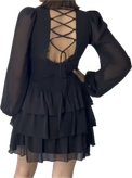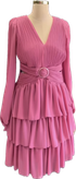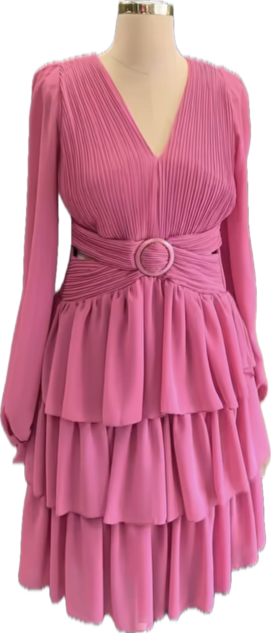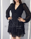 تنخور فوق العاده شیک سرآستین کشدار است و در قسمت سرشانه اِپُل کار شده است دامن بصورت سه طبقه کارشده و بالای کار پلیسه می باشد
