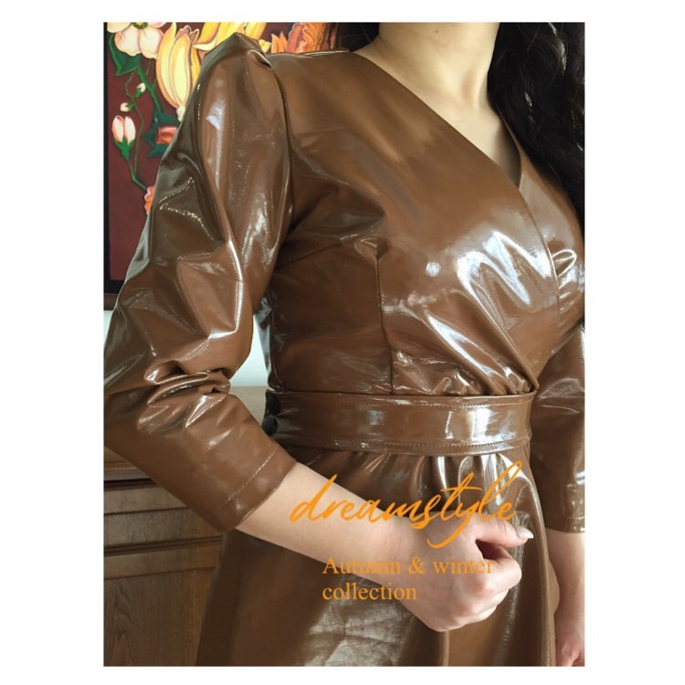 پيراهن ورني قد لباس ١١٨ سانتي متر جنس پشت پارچه كتان است كمربند از جنس خود لباس است از پهلو زيپ دارد بسيار راحت است و اصلا گرم نيست
