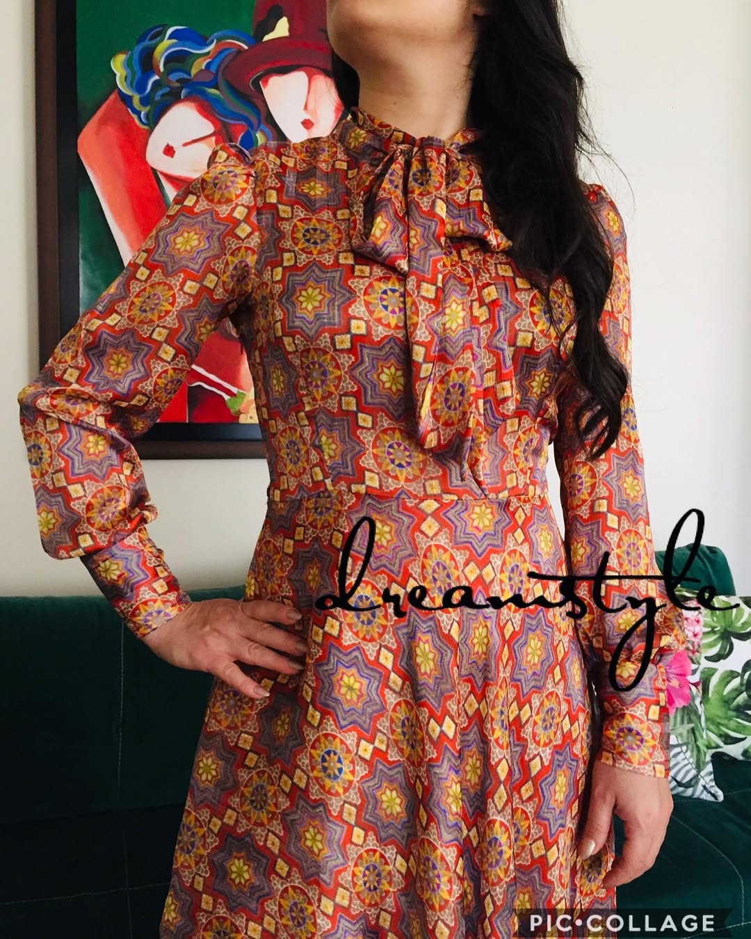 پيراهن سيلك و حرير يقه كراواتي و زیپ از پهلو می باشدآستر دار و اصلا بدن نما نيست